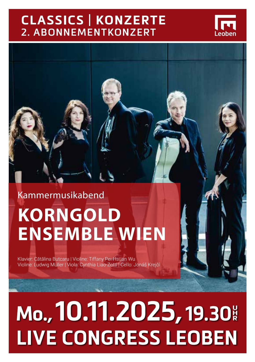 Das Korngold Ensemble Wien wurde von fünf renommierten Musikern, die schon erfolgreich in verschiedenen Kammermusikformationen konzertiert hatten, gegründet und hatte sein Debutkonzert im Arnold Schönberg Center Wien im Dezember 2019.